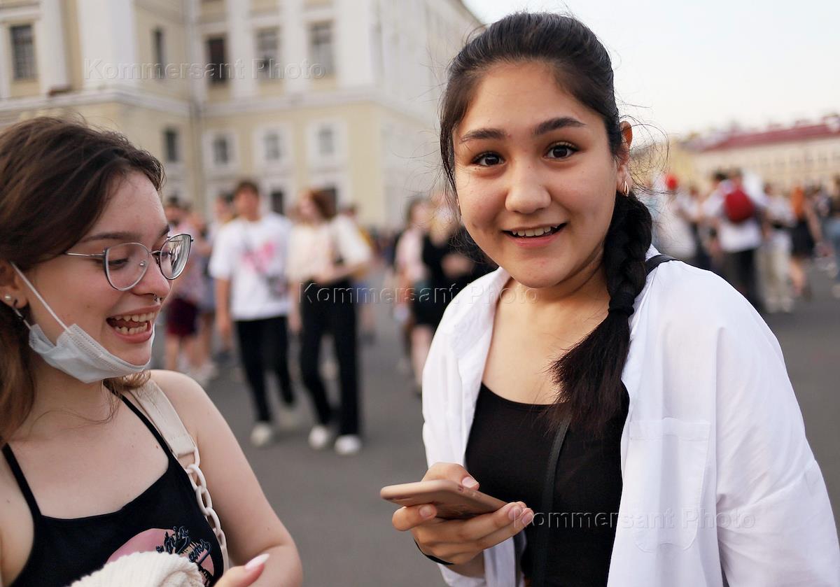 Праздник выпускников средних школ Санкт-Петербурга "Алые паруса". Жанровая фотография. Выпускники на…