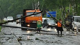 Жанровая фотография. Последствия сильного ливня и ветра в Подмосковье. Упавшие, после ветра столбы…