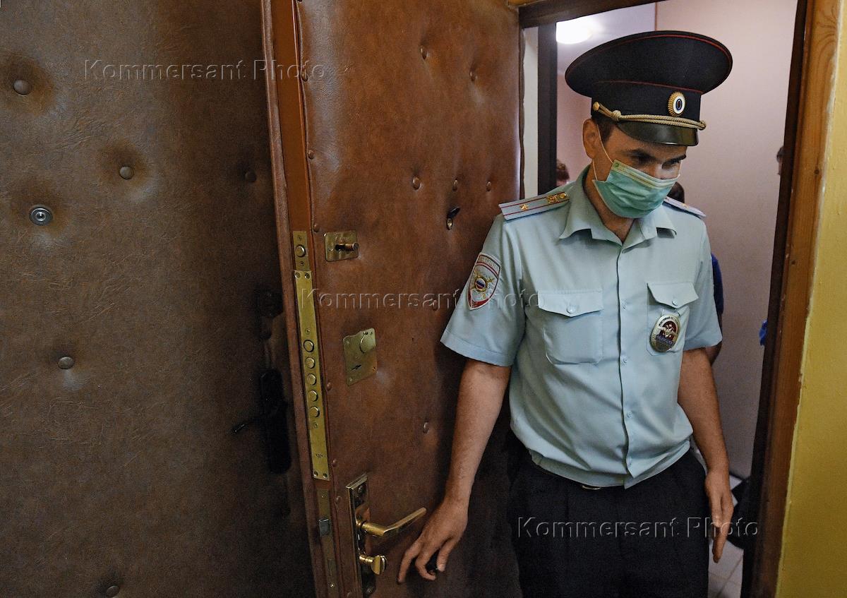 Обыски у журналистки издания "Проект" Марии Жолобовой. Сотрудник полиции у двери квартиры Марии…