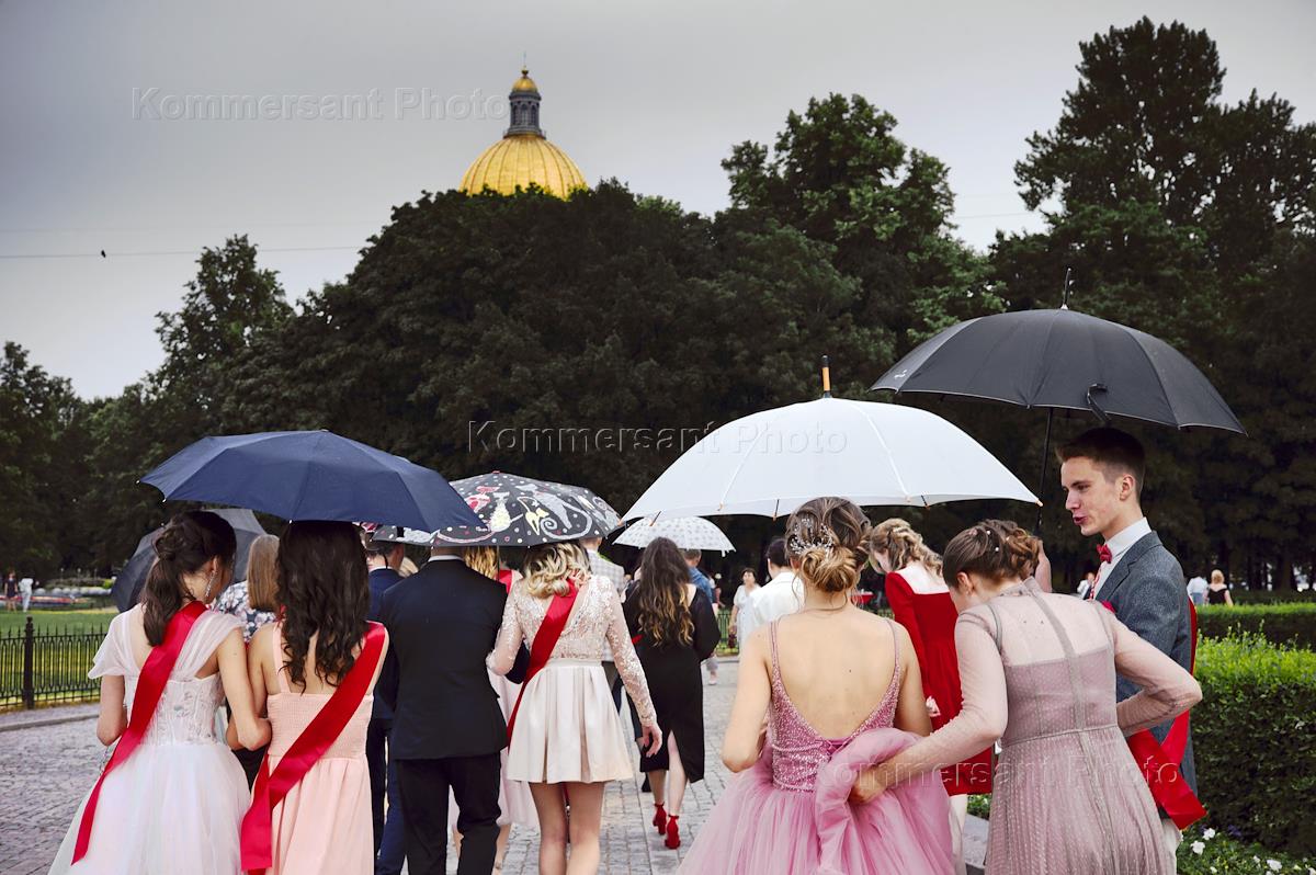 Виды Санкт-Петербурга. Жанровая фотография. Выпускники школ во время прогулки по городу.