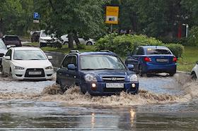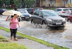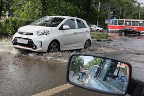 Последствия ливня в Автозаводском районе города. Жанровая фотография. Автомобили во время движения…