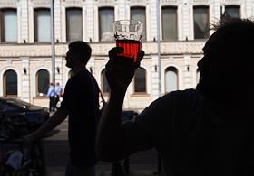 Виды Москвы. Жанровая фотография. Мужчина держит в руке стакан с напитком.