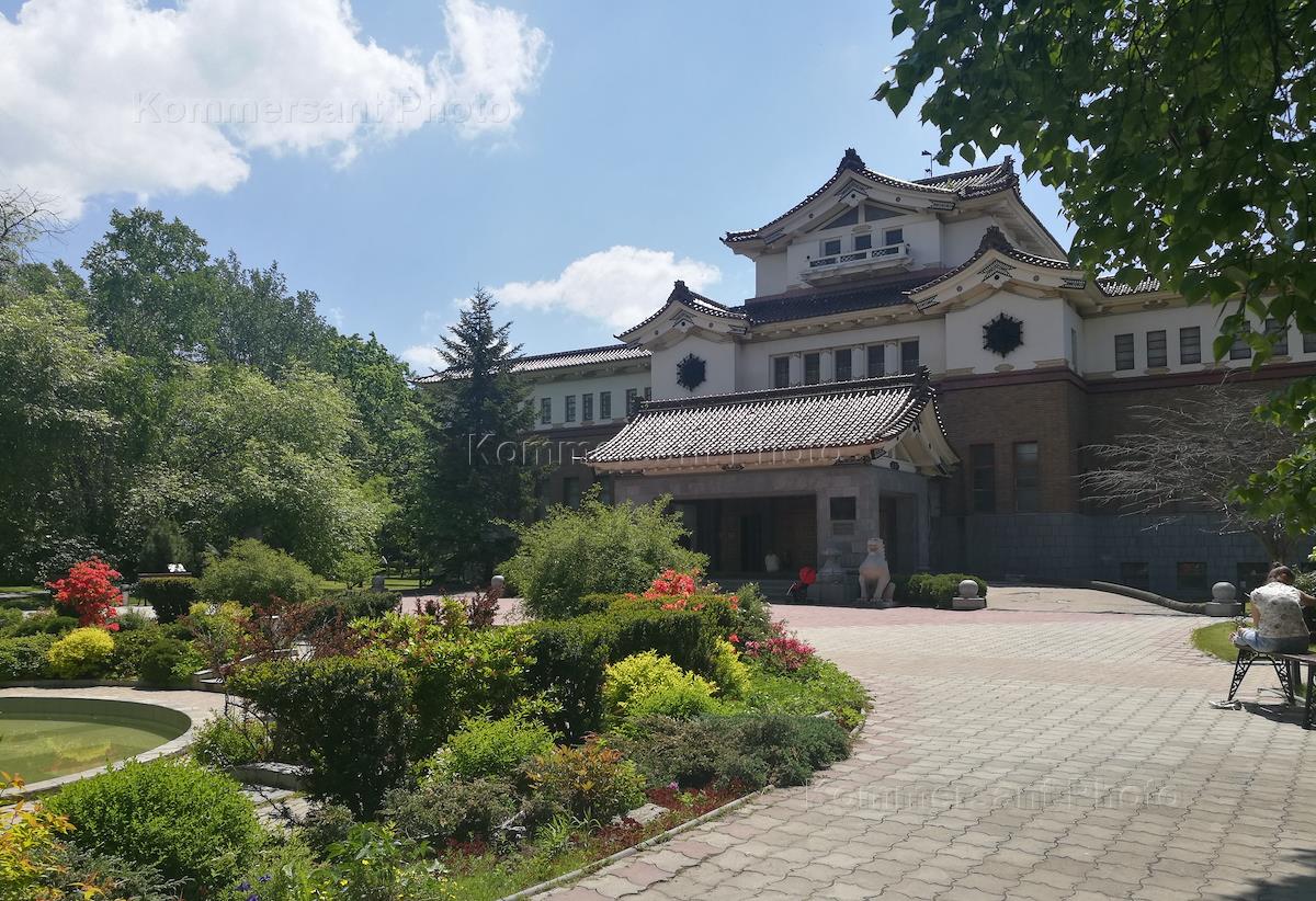 Здания Сахалинского областного краеведческого музея и лодочной станции в парке культуры и отдыха имени Ю.Гагарина