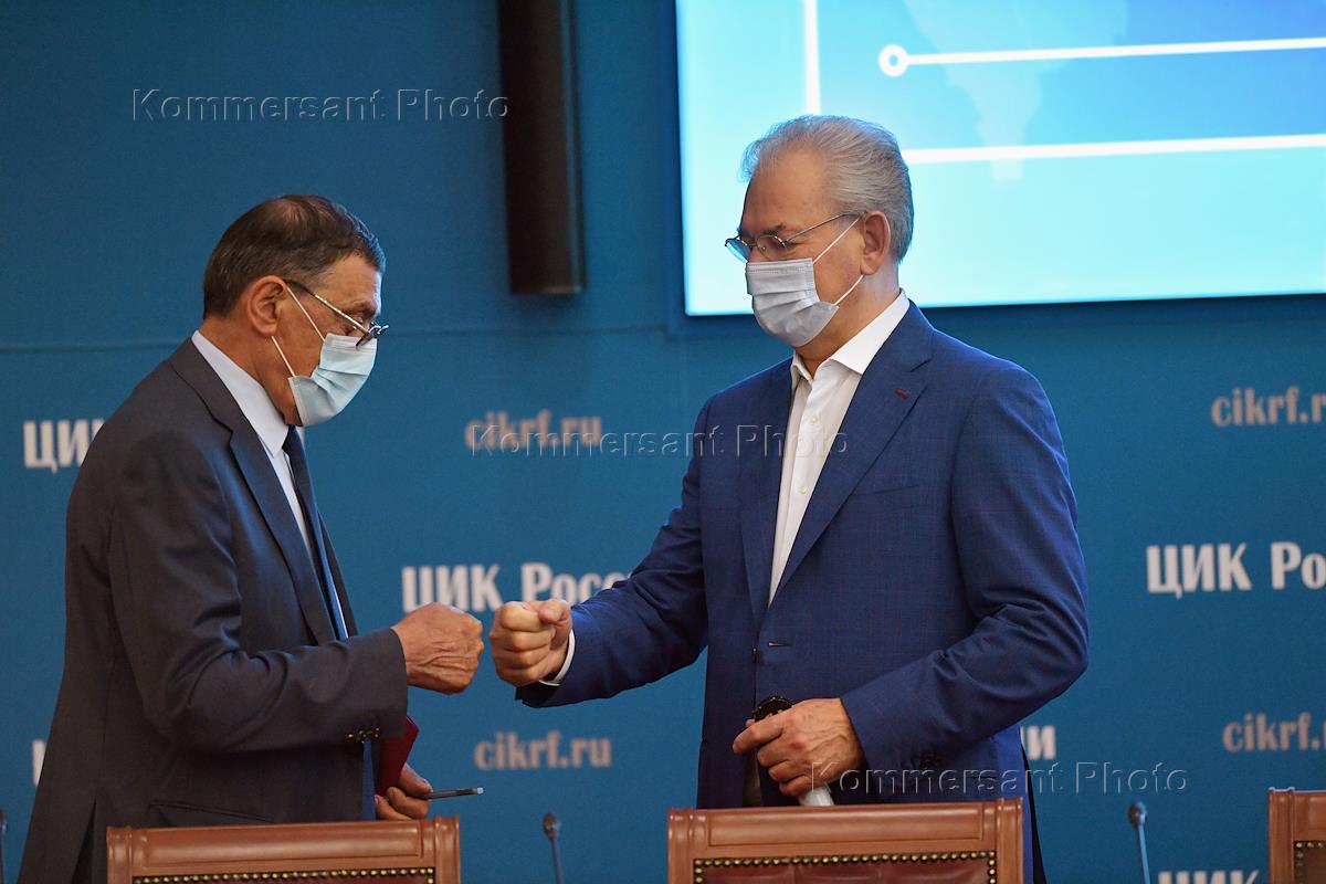 Заседание Центральной избирательной комиссии (ЦИК) России. Член ЦИК России Борис Эбзеев (слева) и…