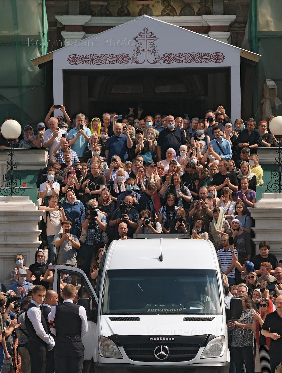 Церемония прощания с музыкантом и актером Петром Мамоновым в Донском монастыре. Основатель и глава…