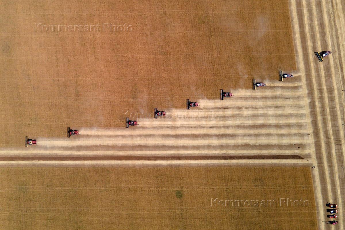 Сельхозпредприятие АО "Аксайское". Уборка яровой пшеницы. Комбайны в поле.
