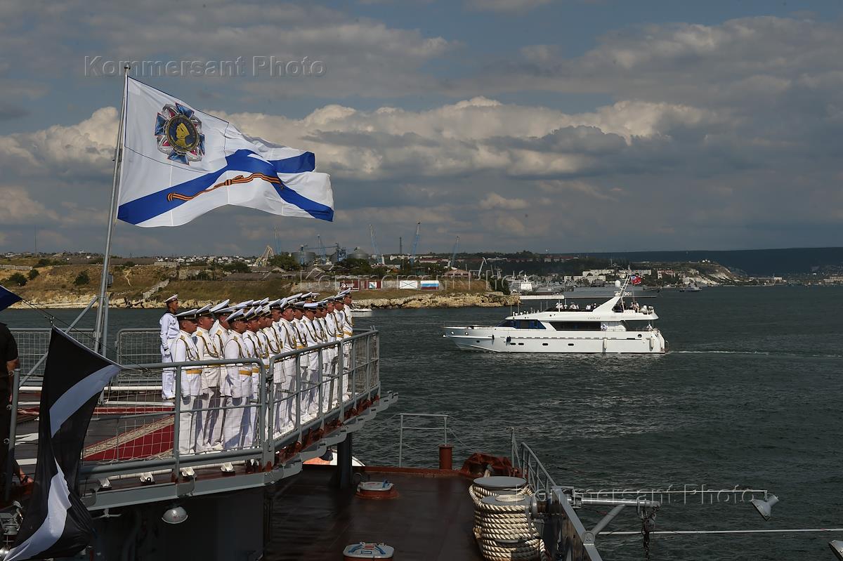 Генеральная репетиция парада кораблей в честь Дня Военно-Морского Флота России в Севастополе. Слева…