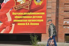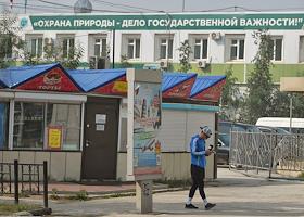 Лесные пожары в Якутии. Жнровая фотография. Плакат на здании города "Охрана природы- дело…