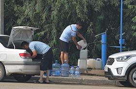 Лесные пожары в Якутии. Жанровая фотография. Жители города набирают питьевую воду из колонки на…