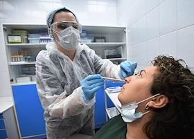 Работа клинико-диагностической лаборатории "Ситилаб". Жанровая фотография. Взятие ПЦР-теста на…