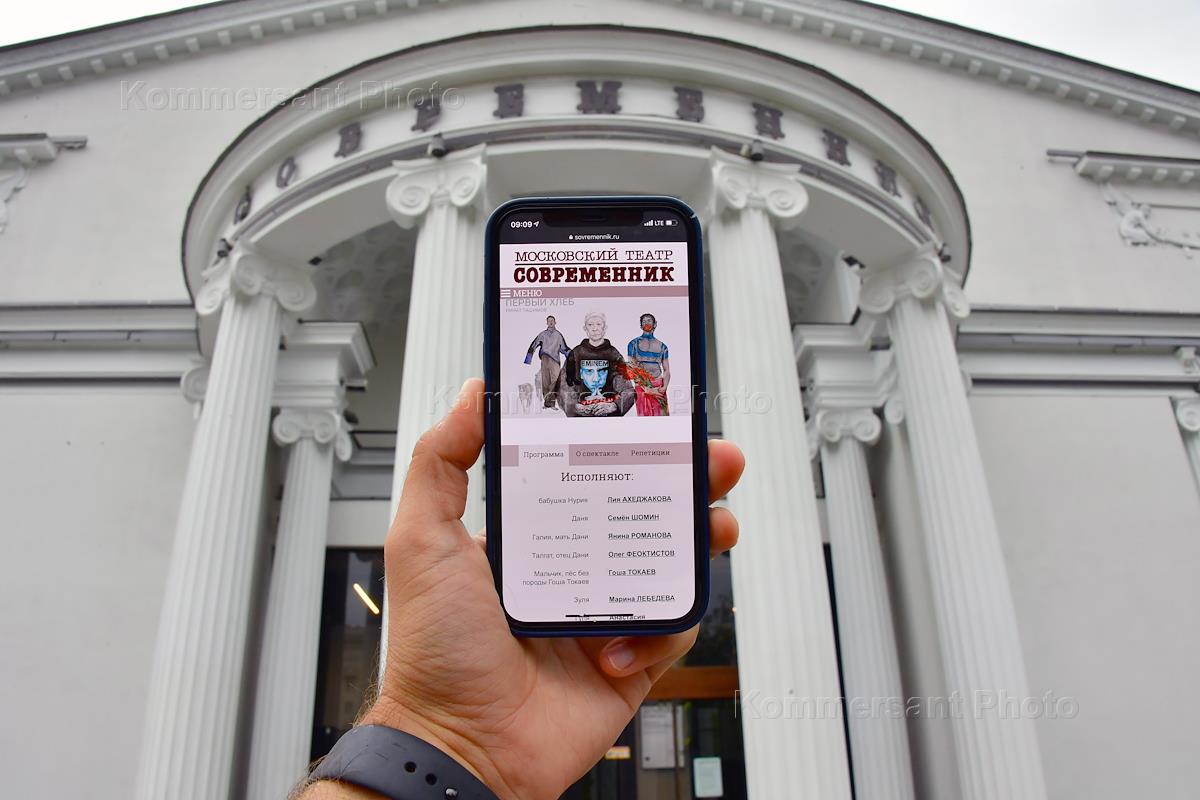 Виды Москвы. Жанровая фотография. Московский театр "Современник". Афиша спектаклей в мобильном…