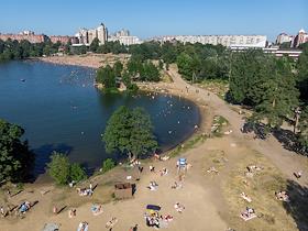 Виды Санкт-Петербурга. Верхнее Суздальское озеро - самое чистое озеро Санкт-Петербурга. Купающиеся в…