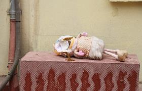 Жанровая фотография. Сломанная кукла на металлическом ящике.
