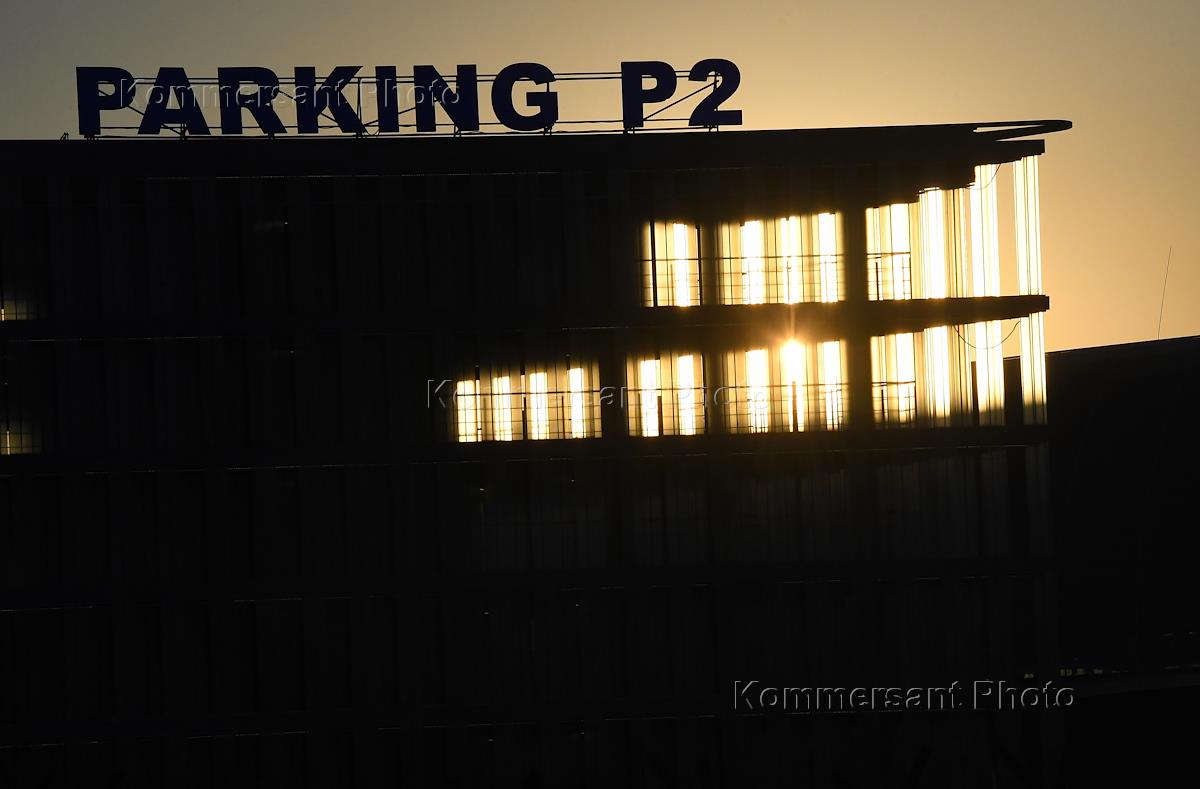 Международный аэропорт "Домодедово" имени М.В. Ломоносова. Жанровая фотография. Закат солнца. Здание…