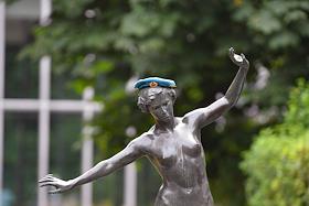 Празднование Дня Воздушно-десантных войск (ВДВ) в Парке Горького. Скульптура "Девушка на буме" в…