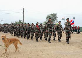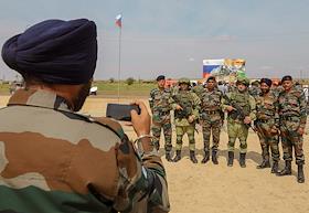 XII совместные российско-индийские учения ИНДРА-2021. Торжественная церемония открытия учений на плацу военного полигона Прудбой.