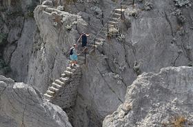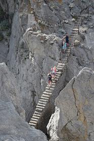 Жанровая фотография. Отдыхающие во время подъема в гору по лестнице.