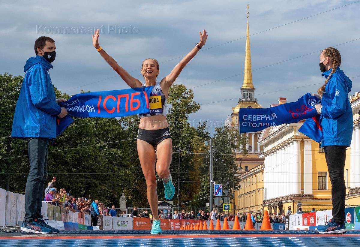 Полумарафон "Северная столица" по центру города. Победительница забега на 21,1 км среди женщин во…