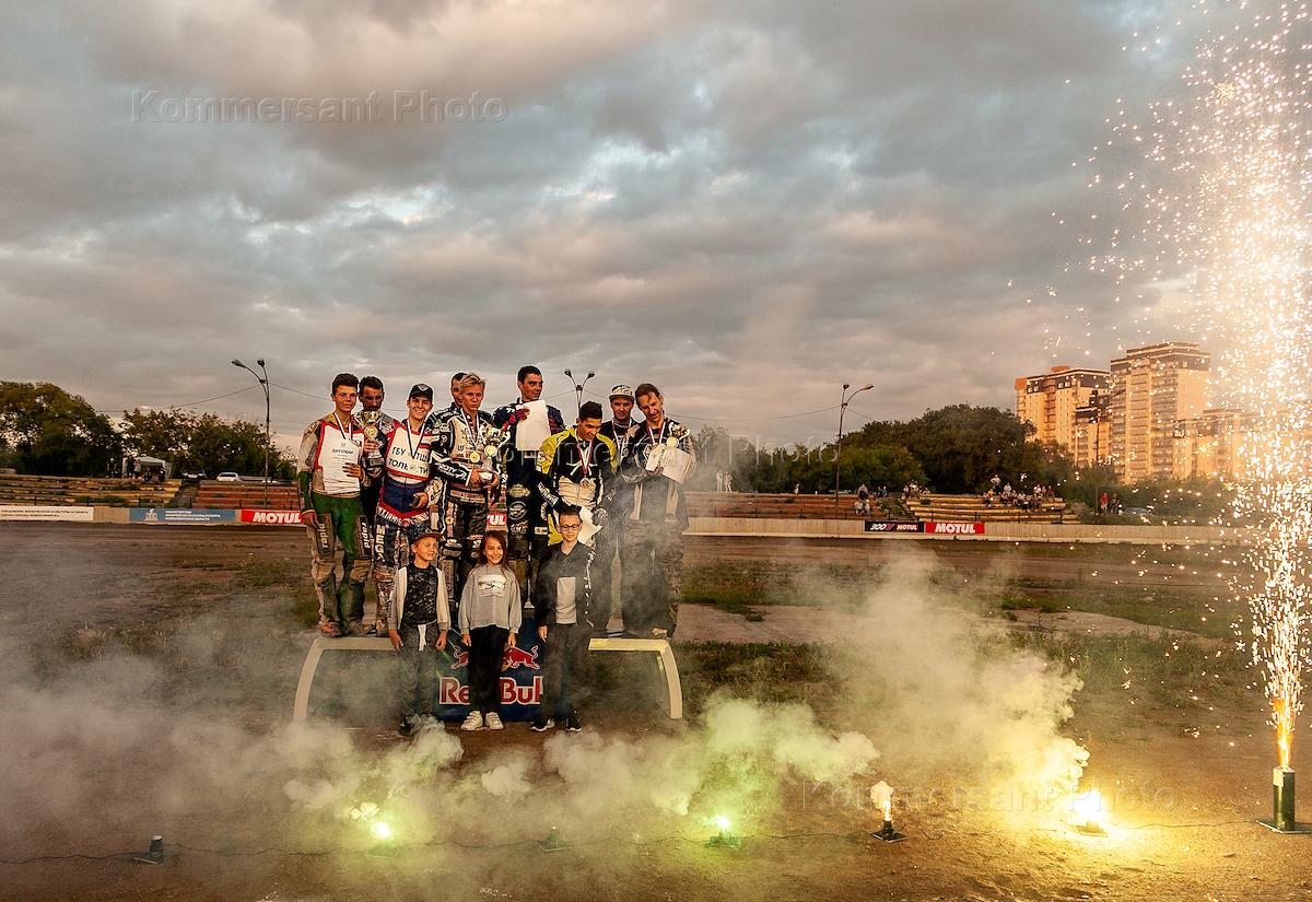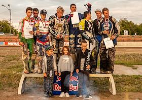 Чемпионат России по спидвею на мотодроме ДОСААФ на улице Тульской в Новосибирске. Церемония…