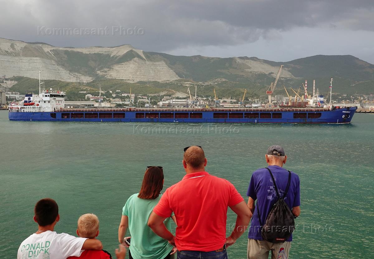 Виды Новороссийска. Разгрузка кораблей в Морском порту.