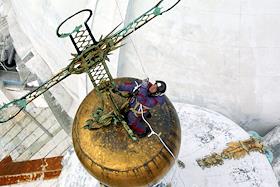 Реставраторы спускаются на вертолете для осмотра купола Смольного собора и креста, обвалившегося на…