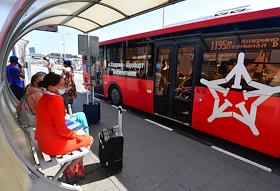 Церемония запуска прямого автобусного экспресс-маршрута "Аэроэкспресс" от терминала D международного…