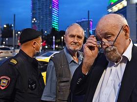 Участники акции памяти погибших в августе 1991 года защитниках Белого дома у стелы "Защитникам…