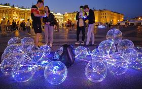 Виды Санкт-Петербурга. Ночной город. Торговец светящимися воздушными шариками на дворцовой площади..