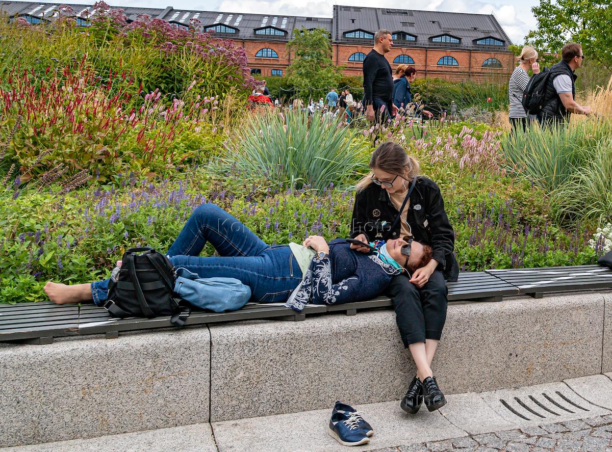Виды Санкт-Петербурга. Отдыхающие на острове Новая Голландия в Парке культуры и отдыха.