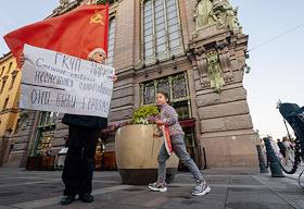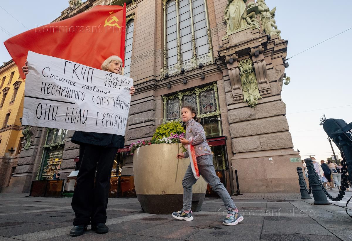 Одиночный пикет посвященный событиям 19 августа 1991 года на Малой Садовой улице.