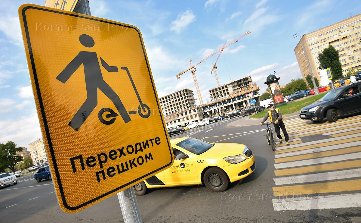 Жанровая фотография. Дорожный знак для водителей самокатов "Переходите пешком".