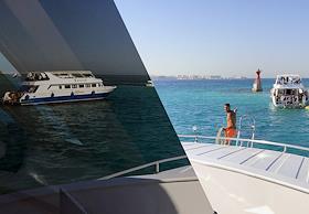 Виды Египта. Красное море. Жанровая фотография. Отдыхающие во время морской прогулки.