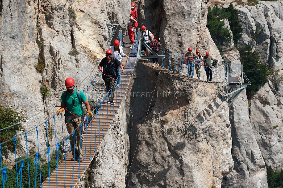 Досуг, туризм и отдых Новый экстремальный маршрут «Небесная тропа» открылся на Ай-Петри. Узкая искусственная тропа длиной 360 метров крепится к скале и пролегает вдоль зубцов Ай-Петри.