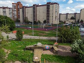 Виды Санкт-Петербурга. Рыбацкое. Макет военного самолета на детской площадке.