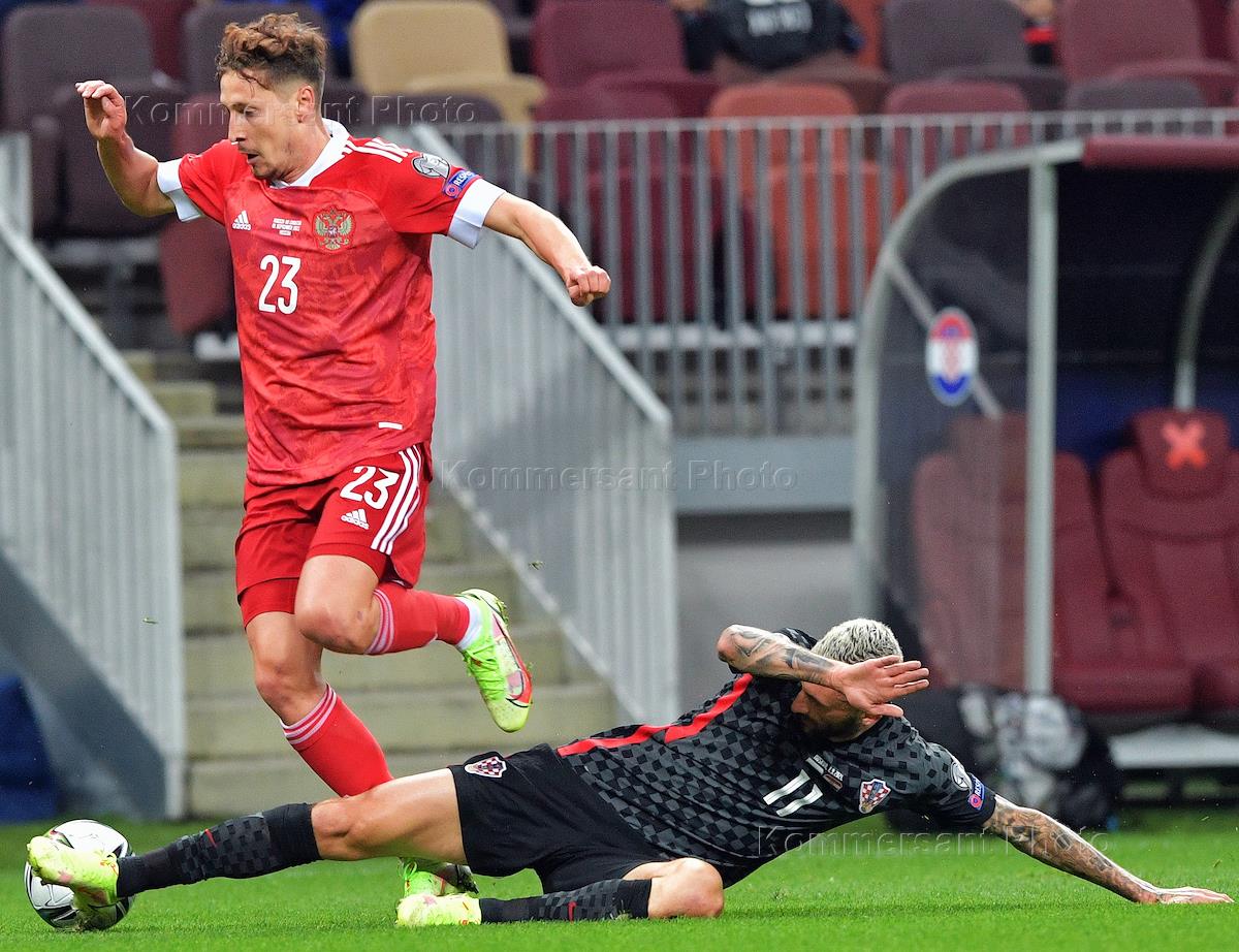Отборочный матч Чемпионата мира-2022 по футболу между национальными сборными России и Хорватии на…
