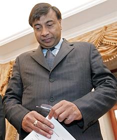 Владелец компании Mittal Steel Лакшми Миттал во время пресс-конференции.
