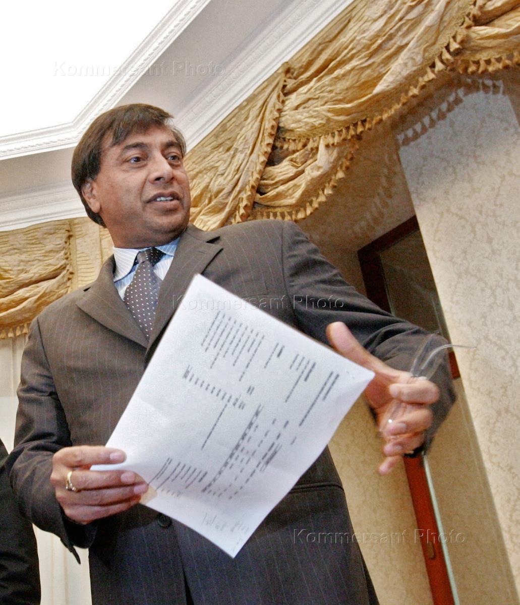 Владелец компании "Mittal Steel" Лакшми Миттал во время пресс-конференции.