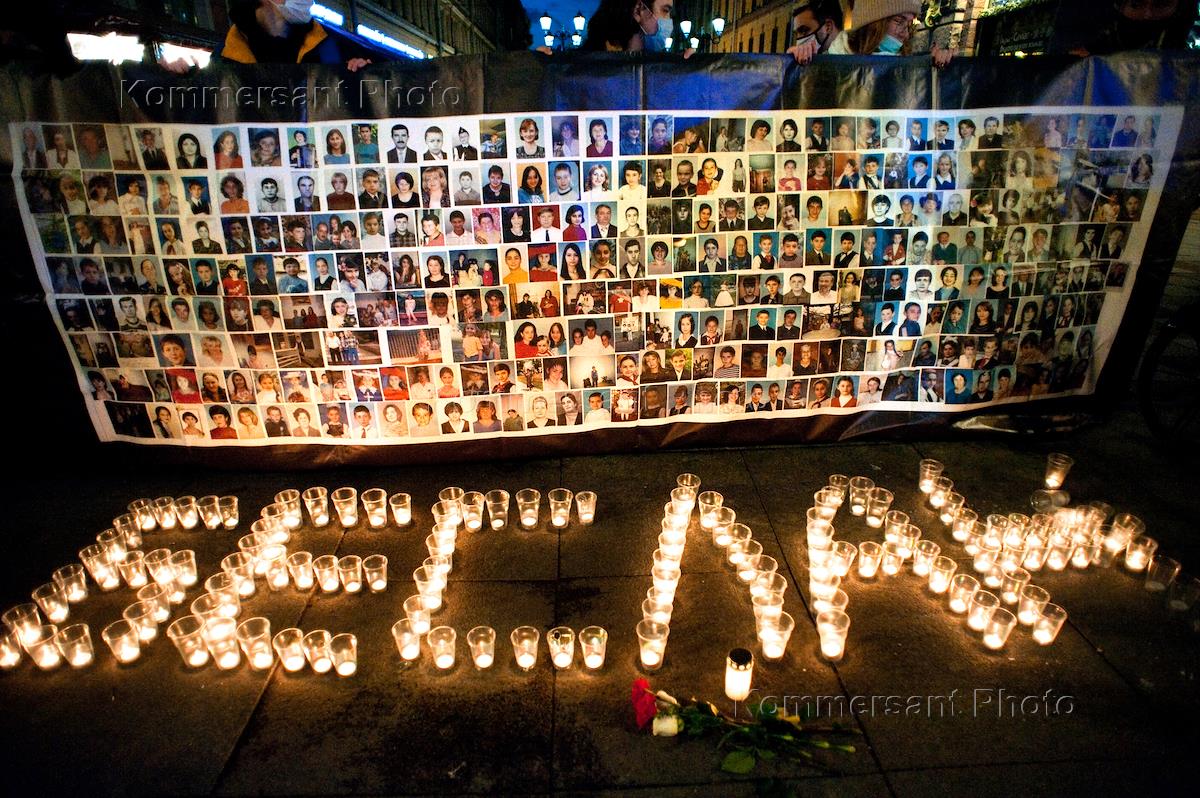 Акция в память о жертвах теракта в школе №1 города Беслана, произошедшего 1 сентября в 2014 году в Санкт-Петербурге, ул. Малая Садовая.