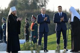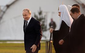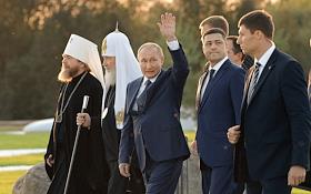 Рабочая поездка президента России Владимира Путина в Псковскую область. Слева направо: митрополит…