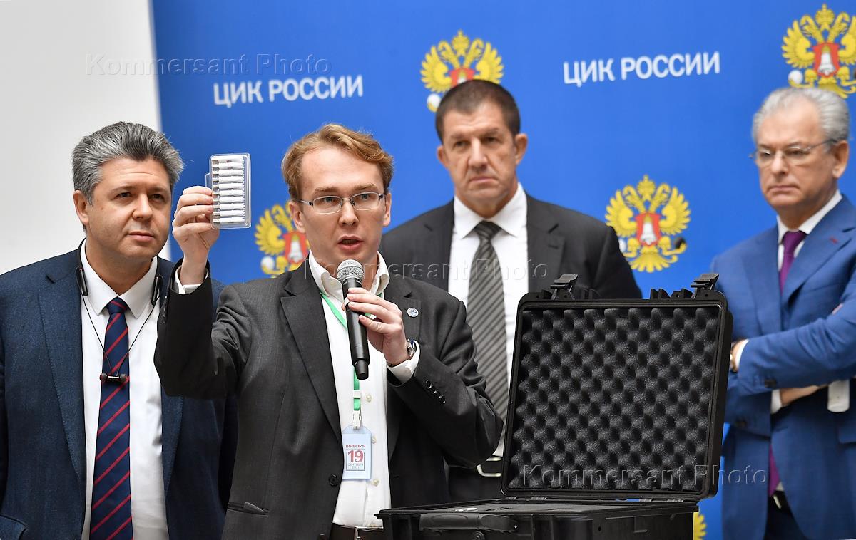 Политика Церемония разделения ключей шифрования голосования перед стартом дистанционного электронного голосования и презентация видеостены, где расположены экраны видеонаблюдения за выборами в Единый день голосования в Центральной избирательной комиссии (ЦИК) России в Москве.