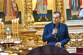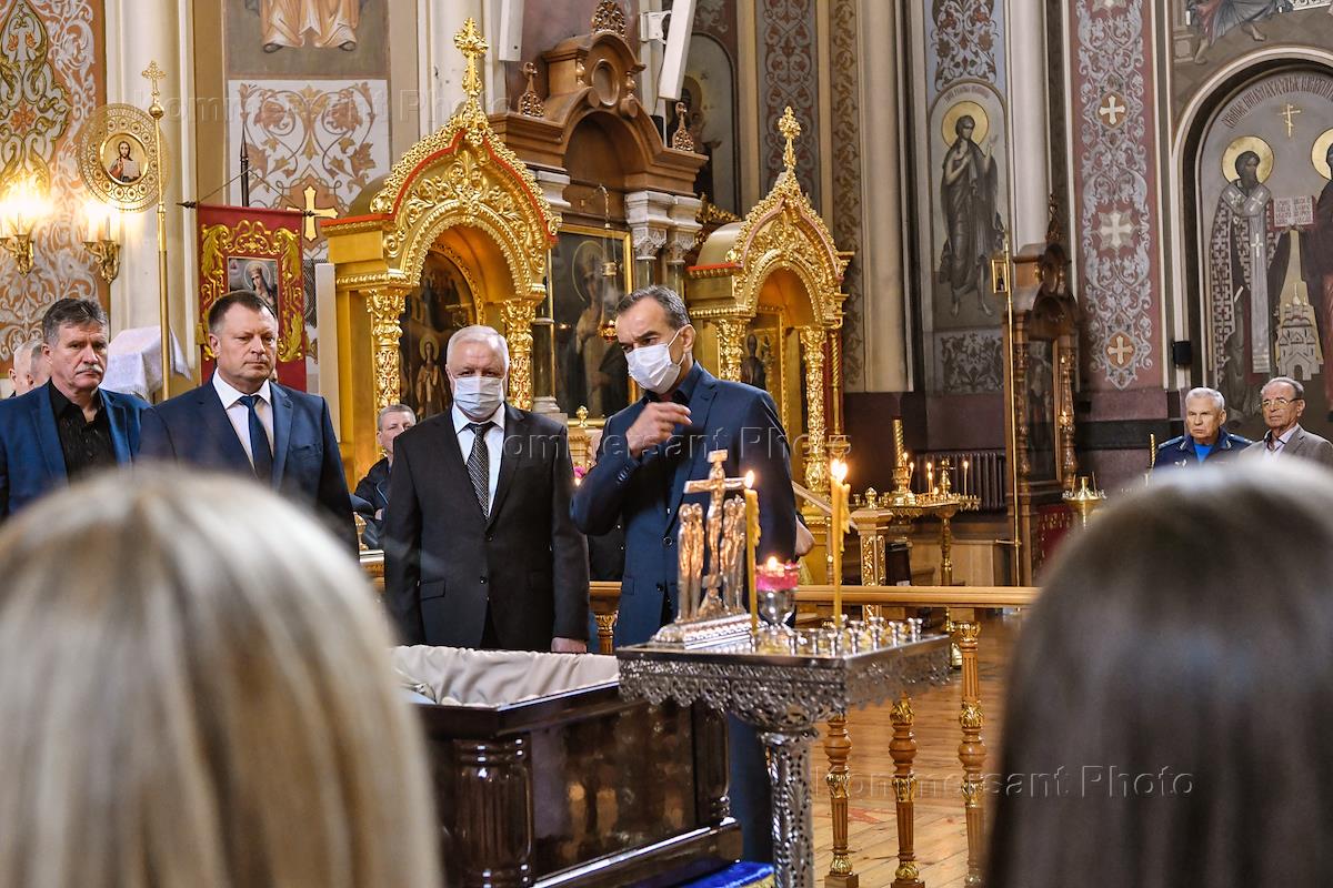 Церемония прощания с Героем России, генералом армии Виктором Казанцевым в Свято-Екатерининском кафедральном соборе в Краснодаре.