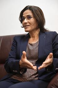 Председатель исполнительного комитета Совета демократической Сирии (СДС) Ильхам Ахмед во время интервью.