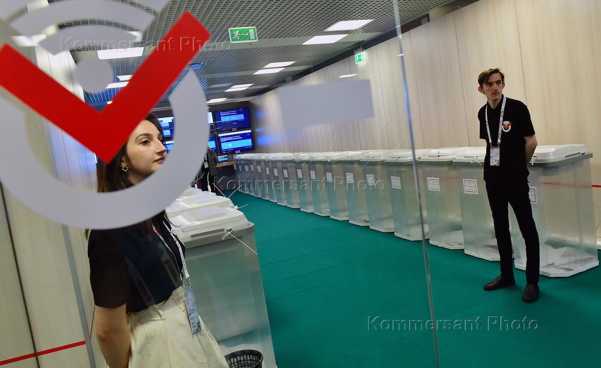 Выборы депутатов Государственной Думы России восьмого созыва. Жанровая фотография. Сотрудники во…