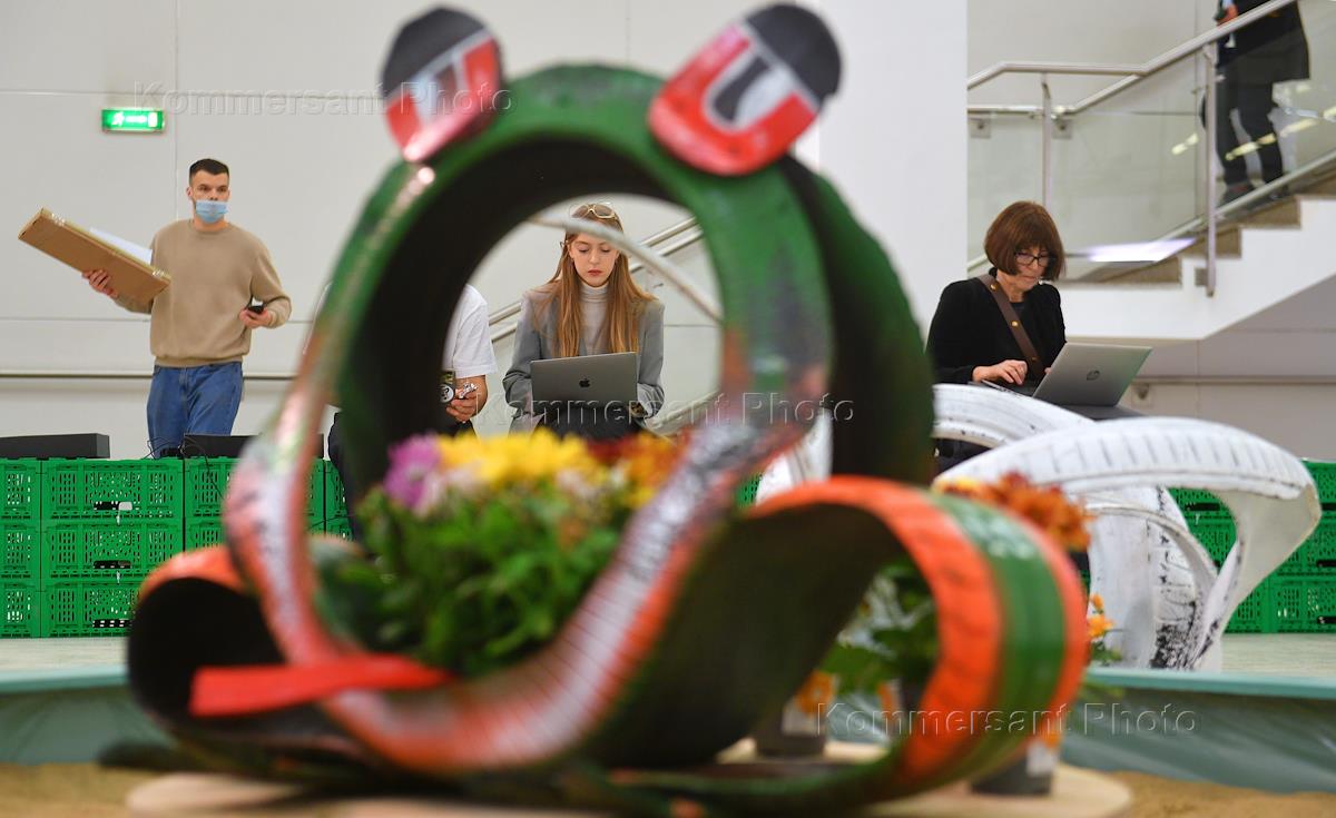 Подготовка к открытию ярмарки современного искусства Cosmoscow в Центральном выставочном зале (ЦВЗ)…