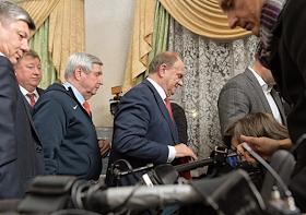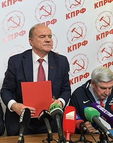 Политика Единый день голосования. Выборы в Госдуму VIII созыва. Брифинг руководства Коммунистической партии России (КПРФ), на котором были подведены предварительные итоги выборов депутатов Госдумы VIII созыва, в Центральном штабе КПРФ.