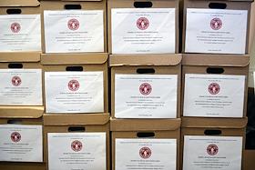 Итоговое заседание Санкт-Петербургской избирательной комиссии. Жанровая фотография. Коробки с…