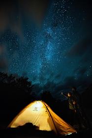 Виды Республики Алтай. Жанровая фотография. Туристы смотрят на Млечный путь на берегу реки Катунь.