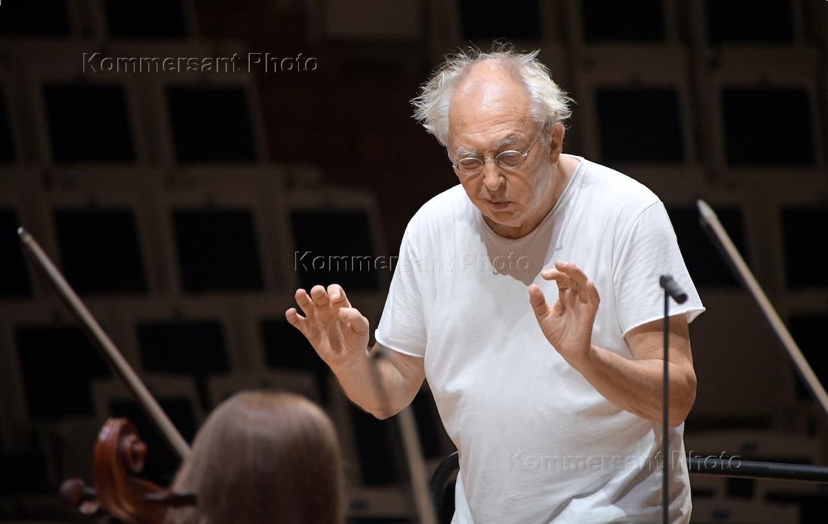 Бельгийский дирижер Филипп Херревеге во время репетиции с Российским национальным молодежным…