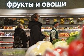 Работа супермаркета "Азбука вкуса" на Арбате. Жанровая фотография. Сотрудник супермаркета в овощном…