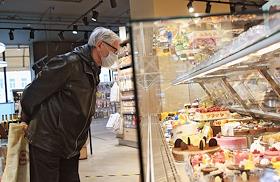 Работа супермаркета "Азбука вкуса" на Арбате. Жанровая фотография. Покупатель в кондитерском отделе…